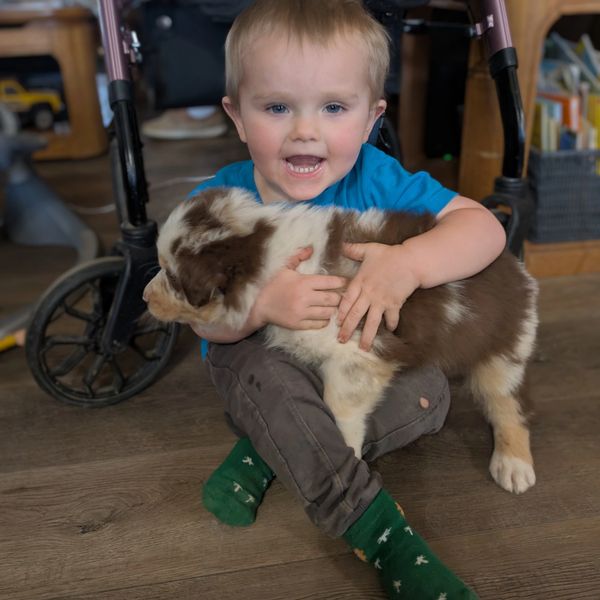"We got the black tricolored nicknamed Ringo from Kyle's litter. We are calling him Ryder. Even though we have had him for only a few days he has been super friendly and very playful towards anyone he meets."