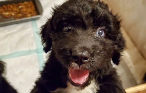 The Aussiedoodle is a cross between an Australian Shepherd and a Poodle, can be Standard or Miniatures. Both of the breeds used to create Aussiedoodles are very smart and considered to be canine Einsteins, making this one super smart cross-breed. Incredibly smart, playful, and loyal, these pups inherited some of the best qualities from both of their parents